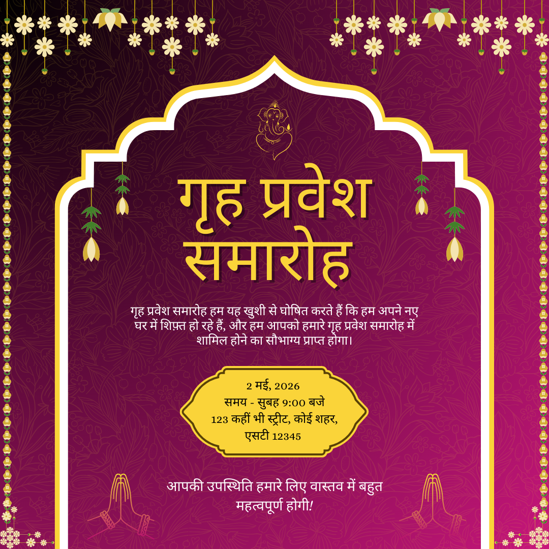 Choose from hundreds of templates, easily customizable for events such as weddings, birthdays, engagements, housewarming (Grah Pravesh), religious ceremonies, and more.